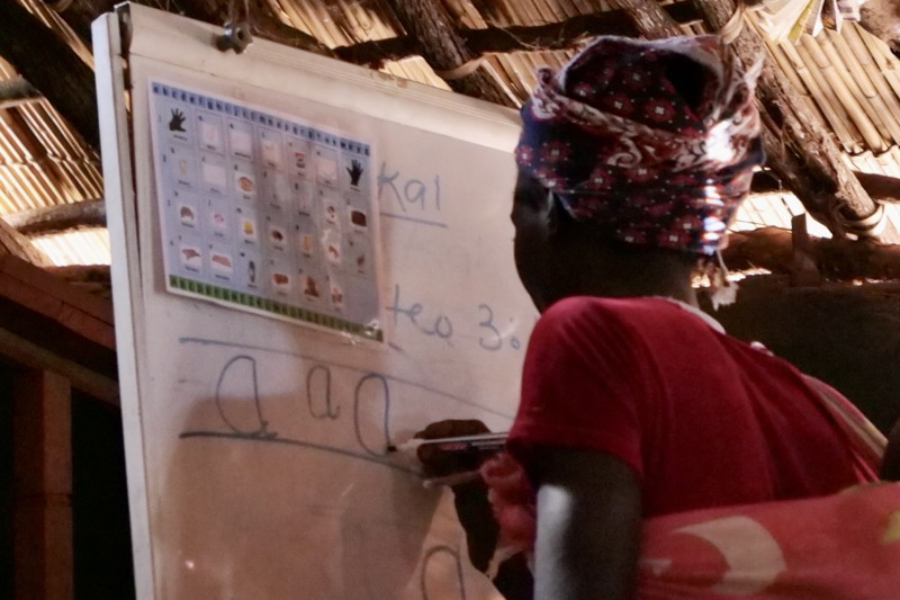 Frauen und Kinder lernen lesen und schreiben