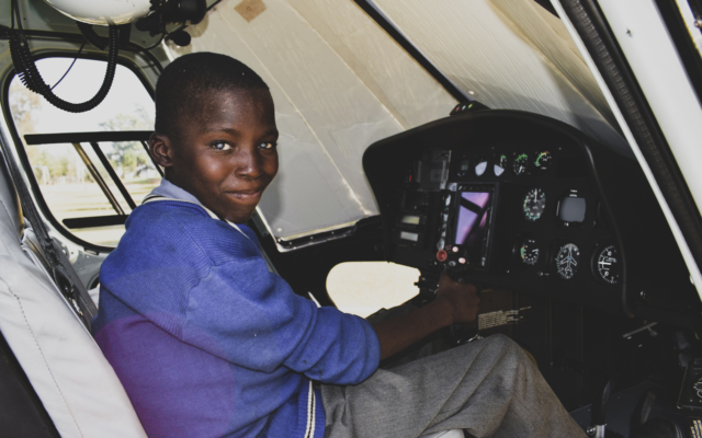 Mercy-Air-Pilot Joel Bärtschi, der Dr. Knight in dieses entlegene Dorf geflogen hat – dies in Zusammenarbeit mit der Organisation Swaziland Nazarene Health Institution – gab dem Jungen die Möglichkeit, ins Cockpit des Mercy-Air-Helikopters zu sitzen. Siphamancla staunte, wie geräumig das Cockpit ist, und er stellte fest, dass seine Füsse gar nicht bis zu den Pedalen reichten. Joel ist sich bewusst, dass er nichts dazu beigetragen hat, in der Schweiz geboren worden zu sein. Er setzt sein Leben dafür ein, damit anderen geholfen wird, denen es viel weniger gut geht. Die Aufmunterung durch den Cockpit-Besuch hat Siphamancla gut getan – er zeigte grosse Dankbarkeit, strahlte übers ganze Gesicht und freute sich riesig über diese seltene Gelegenheit