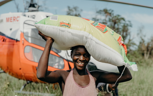 Lufttransport dringend benötigter Lebensmittel nach Nhamasinguere