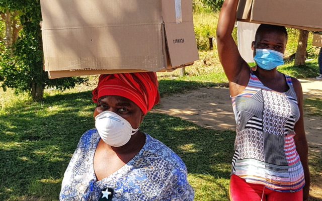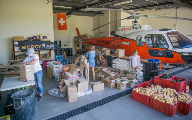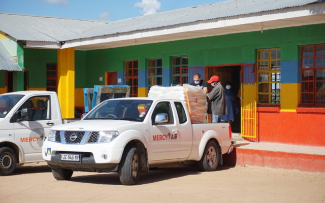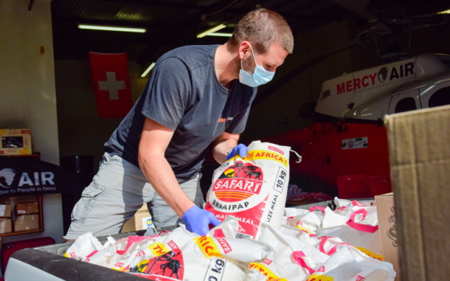 Durch lokale Kontakte der Crew sowie Partnerorganisationen vor Ort weiss Mercy Air, wo hunderte Waisen, Witwen und Familien ohne Erwachsene (auch «child headed homes» genannt) in Not sind. Zurzeit setzt Mercy Air einen Teil der Spenden dazu ein, um robuste Nahrungsmittelpakete für die am stärksten betroffenen Individuen und Familien zusammenzustellen. Schon 12 Franken reichen aus, um eine fünfköpfige Familie für bis zu zwei Wochen mit Grundnahrungsmitteln zu versorgen. In einer Zeit, in der viele Betroffene kein Geld, kaum Nahrung und noch weniger Hoffnung haben, sind diese Nahrungsmittelpakete besonders geschätzt. Somit ergibt es sich, dass der Heli-Hangar zu einem kleinen Logistikzentrum umfunktioniert wurde, wo Grundnahrungsmittel eingelagert und in Pakete abgepackt werden. Statt per Hubschrauber finden die Pakete via Mercy-Air-Pickup den Weg in die Townships, die sich teilweise über mehrere Quadratkilometer erstrecken. Die Art und Weise unserer Transporte mag sich geändert haben, unser Herz schlägt aber nach wie vor für diejenigen Menschen, die in hoffnungslosen Lagen innerhalb unserer Reichweite leben. Gegenwärtig erreichen die gesponserten Nahrungsmittel wöchentlich zwischen zwei- bis dreihundert Familien.