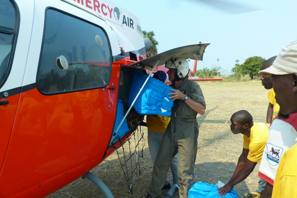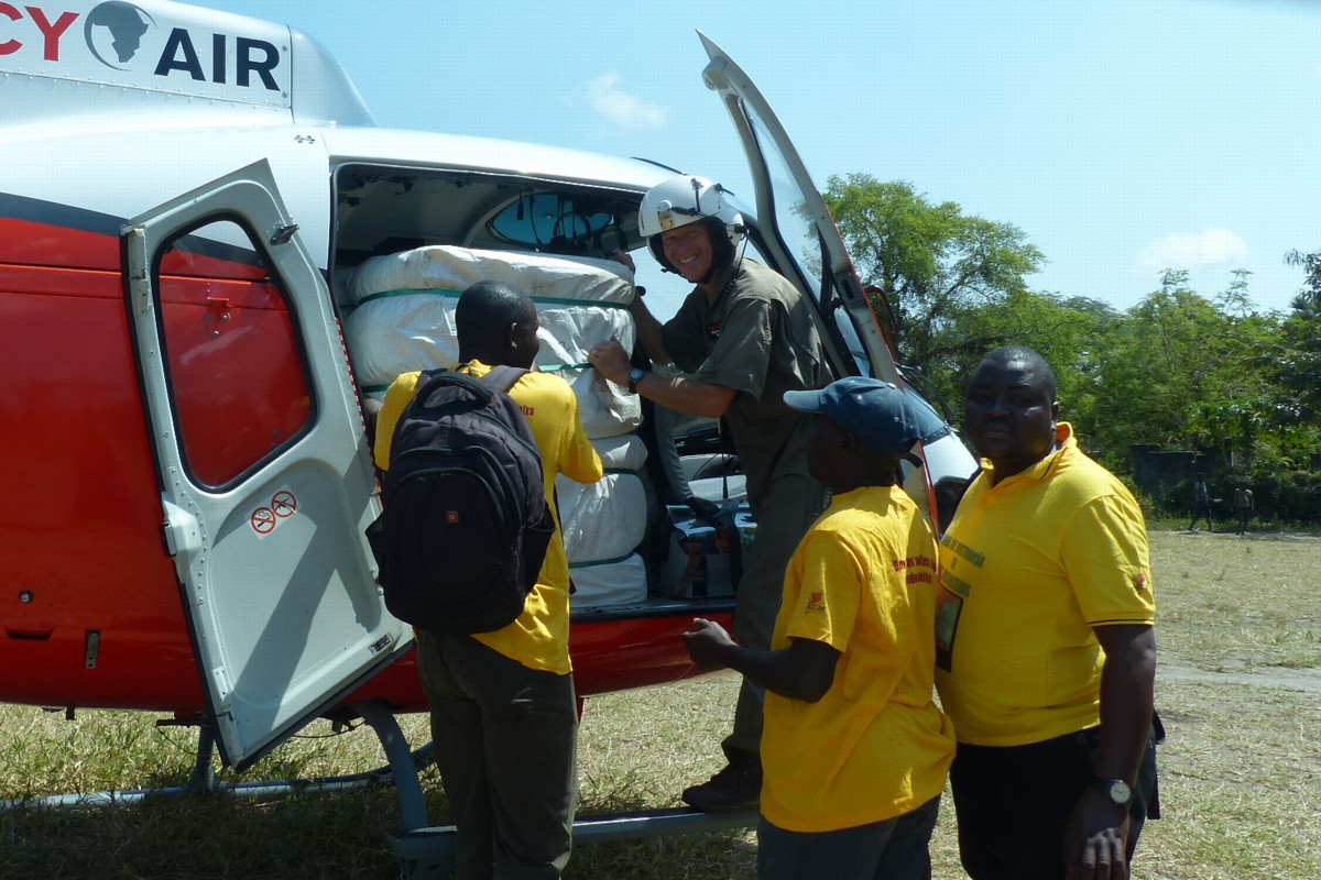 Die Regierung treibt die Verteilung von Moskitonetzen zusammen mit PNCM und den lokalen Gesundheitsposten soweit wie möglich voran. Doch leider bleiben unzählige Dörfer wegen ihrer Abgeschiedenheit unversorgt. Um dem gezielt entgegenzuwirken, bat der lokale Dorfamman von Marromeu Mercy Air um Luftunterstützung. Unser Helikopter transportierte innerhalb kürzester Zeit tausende von Moskitonetzen in die Dörfer des Sambesideltas.