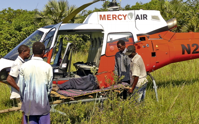 Die Dorfbewohner erkennen den Ernst der Lage. In der Nähe haben sie den Mercy Air-Helikopter landen gesehen. Die medizinische Crew ist im Nachbardorf mit einer Impfkampagne beschäftigt. Sofort wird Armando auf eine einfache Holzbahre gelegt. Es zählt jede Minute. Vier Dorfbewohner tragen den Patienten zum Helikopterlandeplatz. Pilot Dean Yeoman realisiert sofort, dass es sich hier um einen Notfall handelt und fliegt Armando umgehend ins Regionalspital nach Marromeu. Dort erhält der Patient Schmerzmittel und eine intensive Antibiotika-Kur. Ebenfalls müssen mehr als zwei Liter Eiterflüssigkeit aus dem Abszess abgeleitet werden.