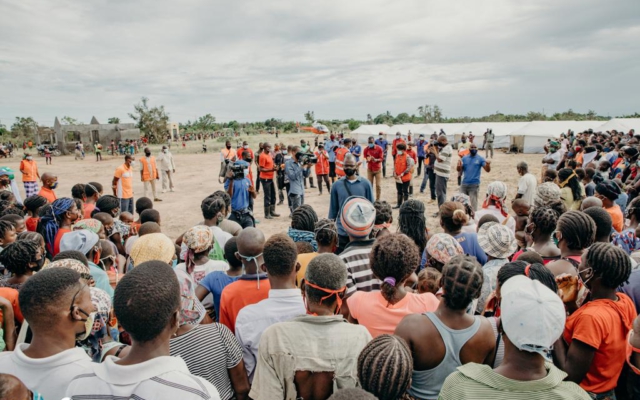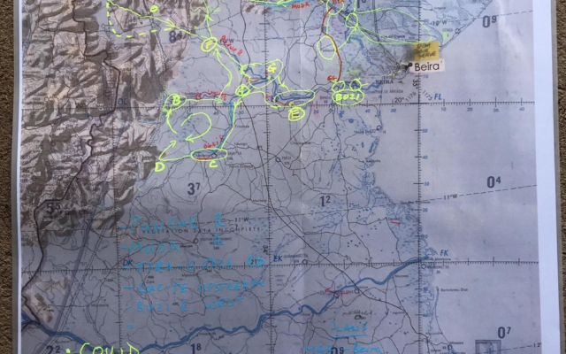Als wir uns dem Dorf selbst näherten, sahen wir mehrere Dächer auf dem Boden liegen, die von den Gebäuden weggeblasen wurden. Die Bewertung wurde durch die recht schnelle Annäherung eines riesigen Gewittersystems jäh unterbrochen. Wir haben es gerade noch rechtzeitig nach Beira geschafft. Der Sturm dauerte mehrere Stunden und erst am späten Nachmittag konnte der Hubschrauber eine VIP-Regierungsdelegation in das Flüchtlingslager GuaraGuara fliegen, um sich aus erster Hand ein Bild von der neuen Situation dort zu machen. Viele hatten diesen erhöhten Ort inmitten der Überschwemmungen erreicht.